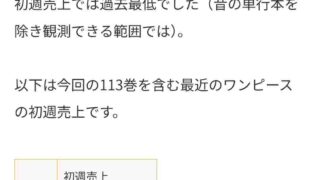 嫌儲 「ワンピース単行本113巻の初週売上が更に激減し過去最低の数字に!年間60万部、鬼滅の刃の1/5に!」何で買わないの?