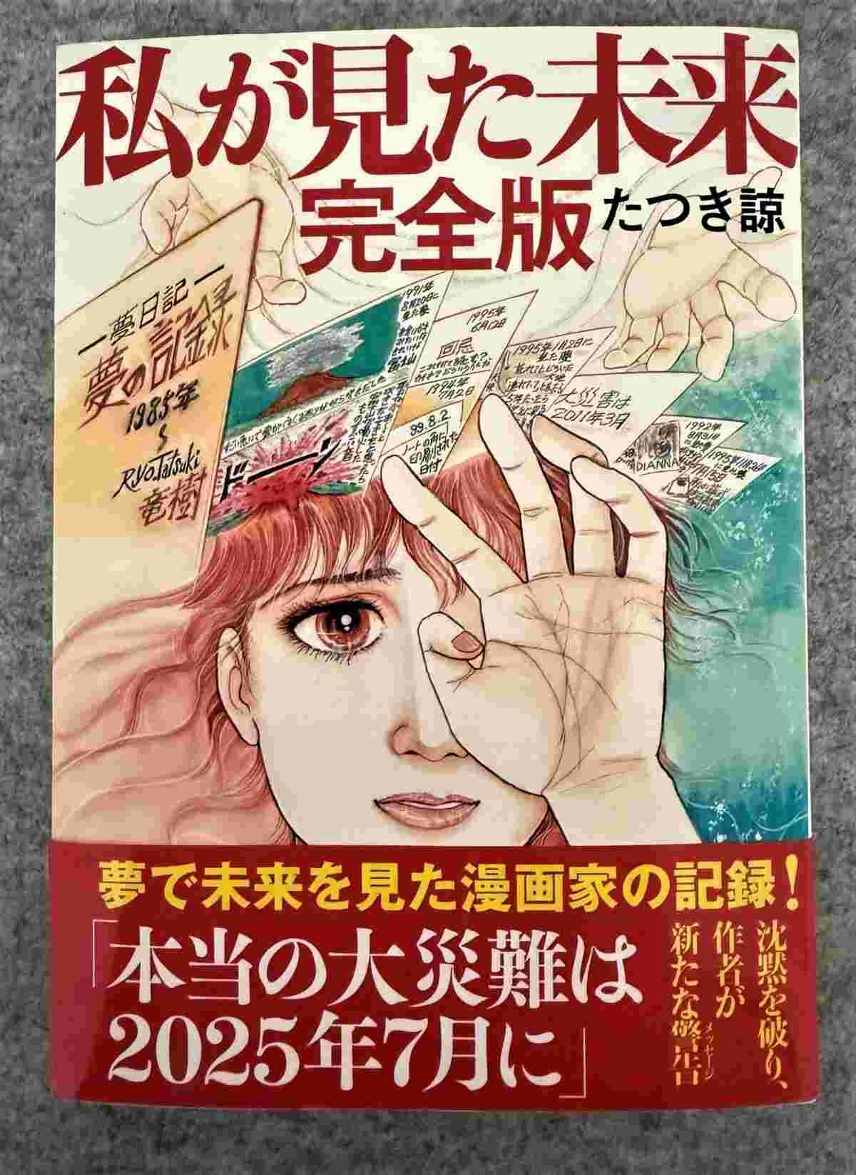 >  21年には「私が見た未来 完全版」が出版され、25年7月5日に起きるとされる大災害の予言が追加された(たつき氏は25年7月と予言しており、具体的な日付には議論もある)。それは、フィリピン海での大規模噴火が引き金となり、東日本大震災の3倍もの高さの津波が襲うというものだ。