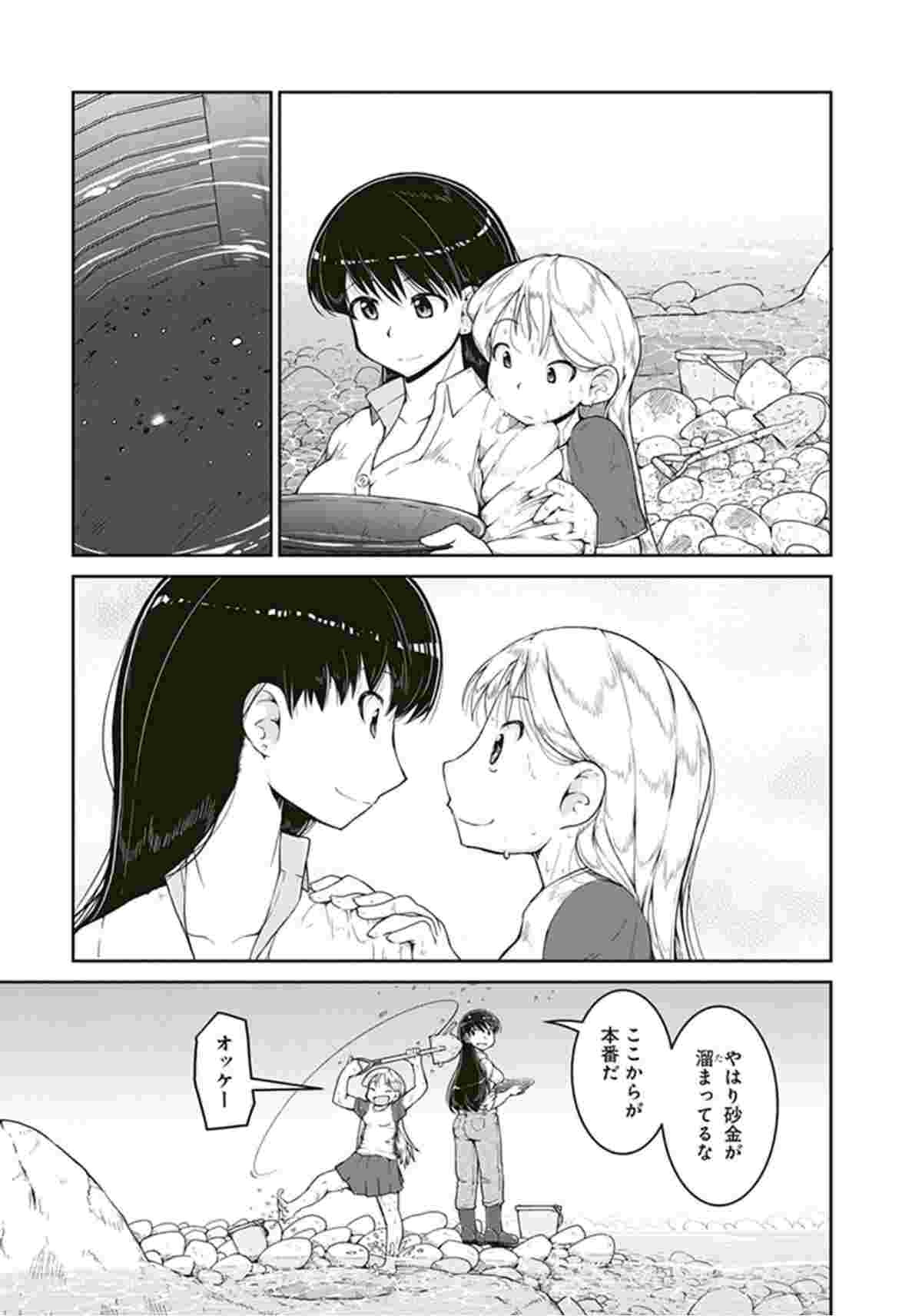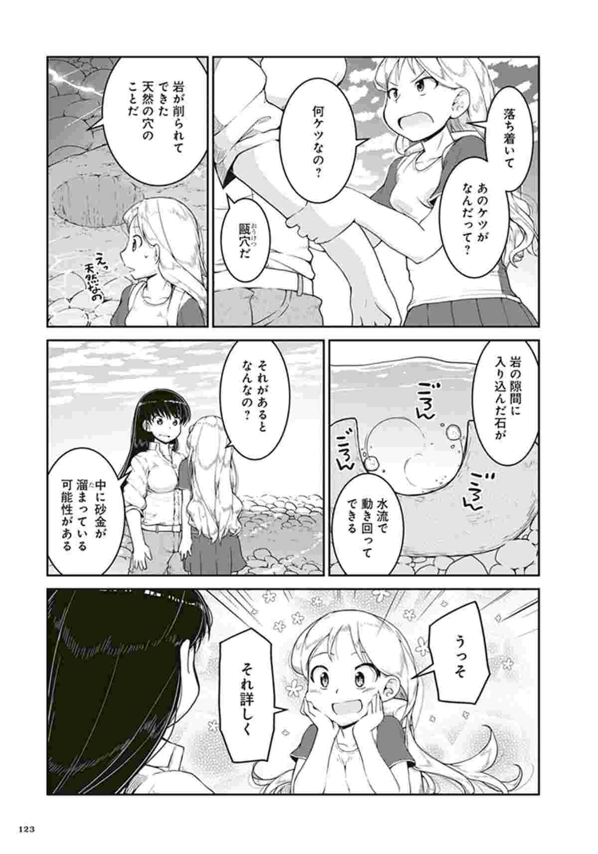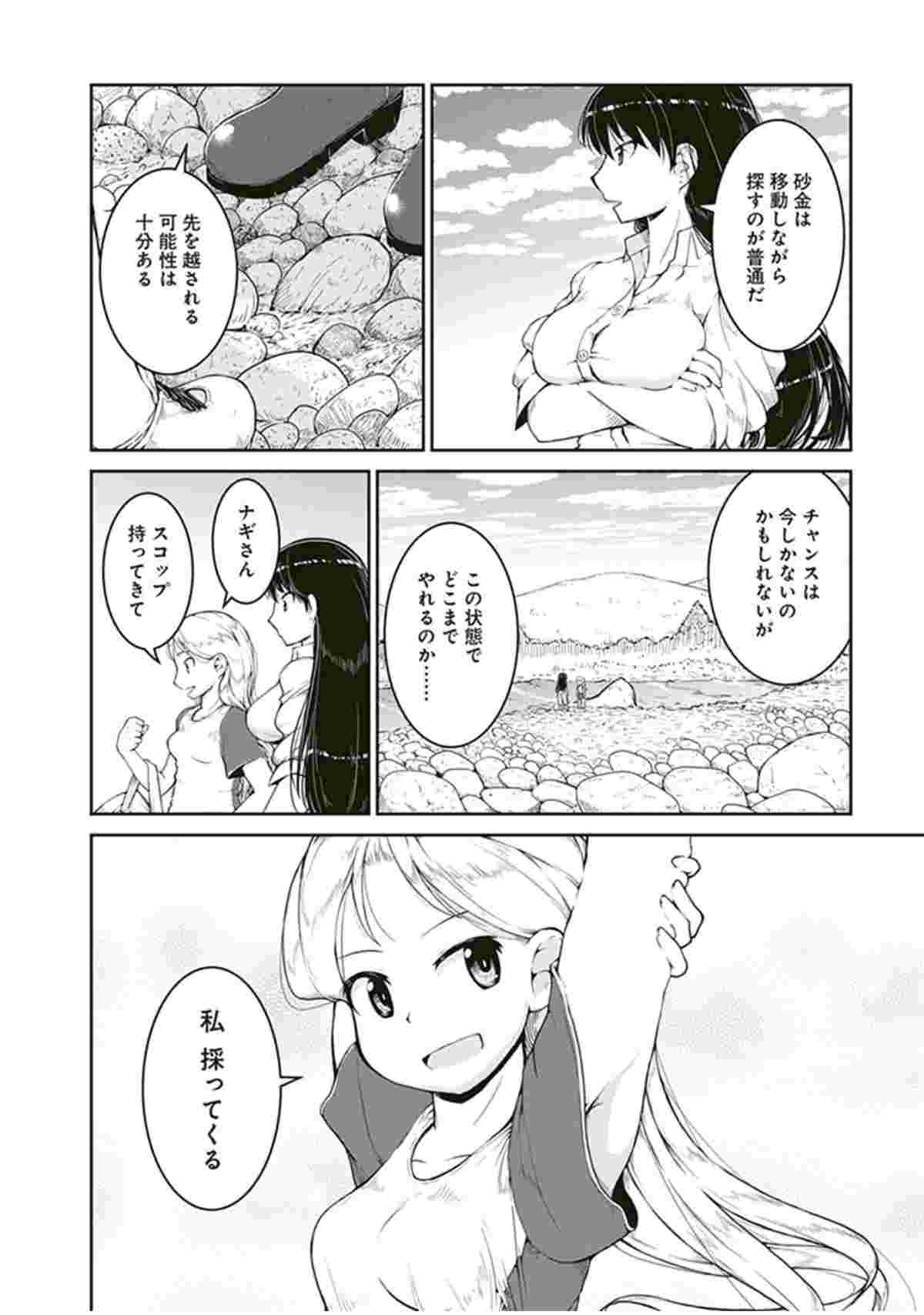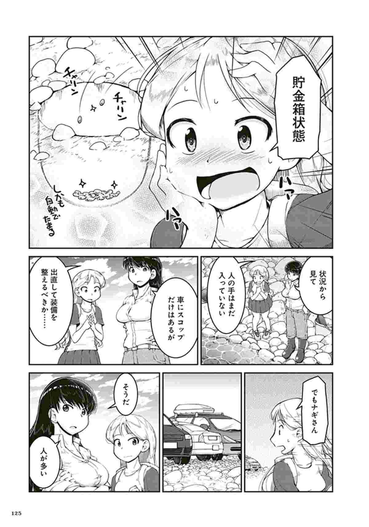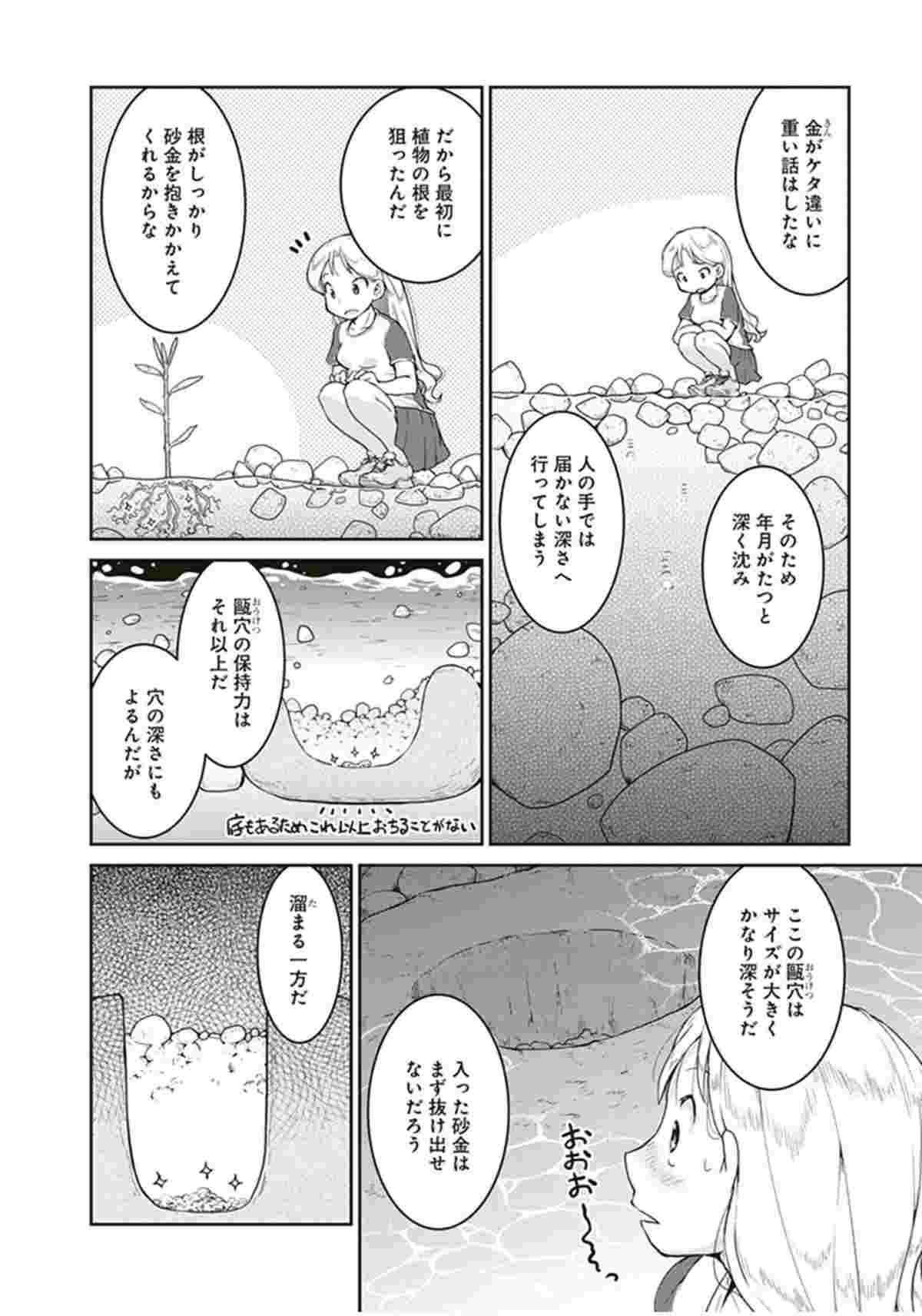 パニング皿、ハンマー、地形図など、専門的なツールを用いた採集シーンも魅力満載。