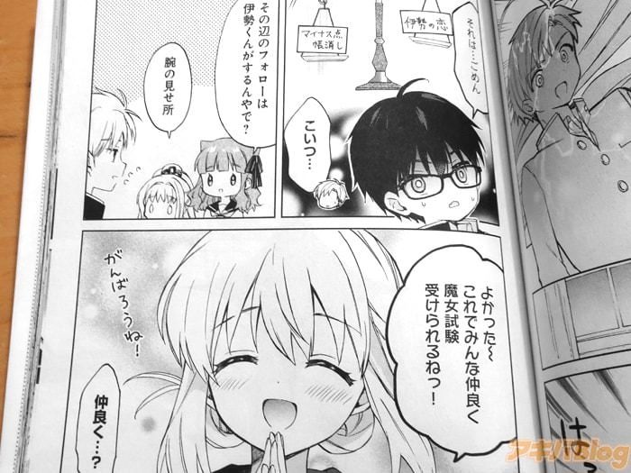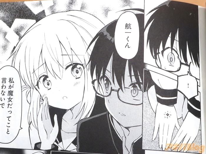 今回発売になった「魔女は満月に咲く」2巻【AA】には、第6話~第10話と第10.5話、番外編を収録(目次)し、裏表紙は『魔女と契約者は一心同体』で、オビ謳い文句は『俺の日常が魔女に侵食されていく──』、『魔女との生活は中学生男子にはちょっと刺激が強め?』になってた。