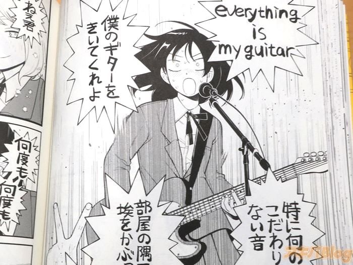 今回発売になったコミックス「ふつうの軽音部」1巻【AA】には第1話~第12話と番外編「友達を作る」を収録(もくじ)し、オビ謳い文句は『このマンガ、全然「ふつう」じゃない!』で、裏表紙は『超等身大のむきだし青春&音楽奮闘ドラマ、開幕!』だった。