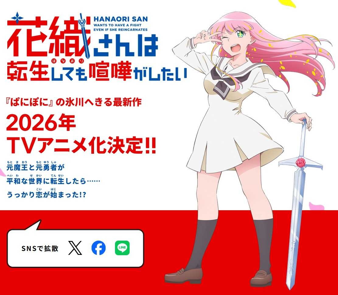 「花織さんは転生しても喧嘩がしたい」アニメ化、「ぱにぽに」氷川へきるが描くラブコメ