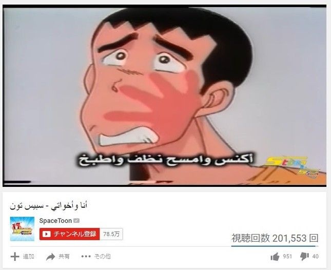 シリア、UAEなどでアニメを放送する「スペーストゥーン」のYouTubeチャンネルには、「ツヨシしっかりしなさい」のアラビア語版(ダイジェスト)が公開されていた