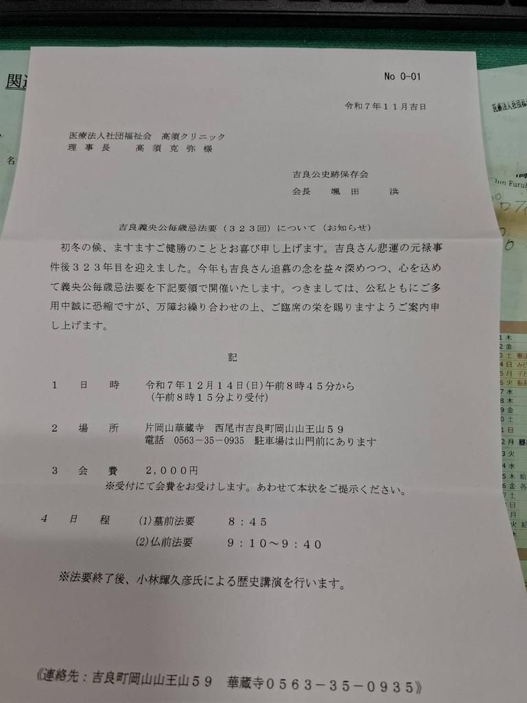 明日僕は三河の誇りの名君でありながら、日本一の風評被害者となり、テロリストの被害者にされたお気の毒な吉良上野介義央公を顕彰する法要に参加する。