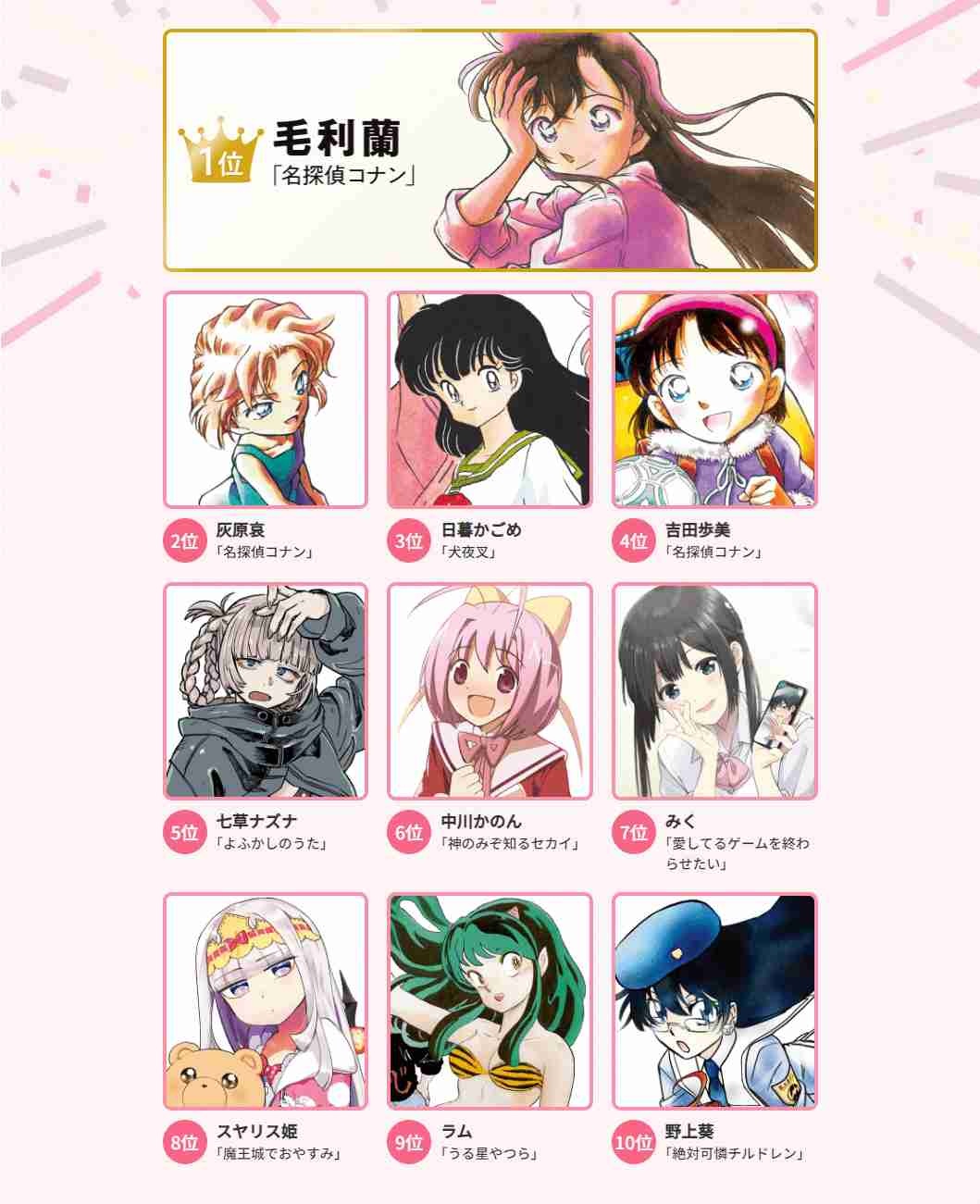 週刊少年サンデー“ヒロイン総選挙”、第一位は『名探偵コナン』より「毛利蘭」に決定。2位には「灰原哀」がランクインしたほか、3位は『犬夜叉』より「日暮かごめ」などそうそうたる顔ぶれ