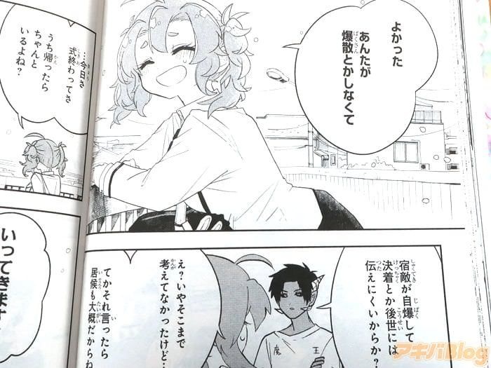 >>11今回発売になった「JK勇者と隠居魔王」1巻【AA】には、第1話から第6話と、番外編「勇者と魔王とカレー」を収録し(もくじ)、裏表紙は『宿敵からのまさかな提案!?』で、オビ謳い文句は『長年続いた魔王と勇者の戦い!和平の手段はまさかの同居!?』、『週刊少年ジャンプが贈る、魔王×勇者 同居コメディ!』だった。