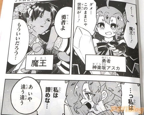 『JK勇者と隠居魔王』は、コミックナタリーによると『魔王が勇者の家に居候をすることから始まる日常コメディ。長きにわたる勇者と魔王の戦いが続く中で、人間の暮らしやオタクコンテンツに興味が湧いてきた魔王は隠居を決意し、魔王業を休む代わりに勇者の家に居候させてくれないかと提案する。実は勇者である少女・神楽坂アスカも勇者を辞めて普通の女子高生になりたいと考えていたことから、この提案を快諾。2人は同居生活を始めるが…』から始まるお話。