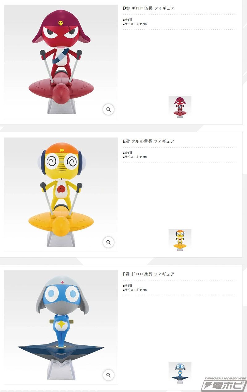 ケロロ軍曹、タママ二等兵、ギロロ伍長、クルル曹長、ドロロ兵長のフィギュアが当たる一番くじ。ラストワン賞は「わしづかみ!?ケロロぬいぐるみ」です。続報をお楽しみに!