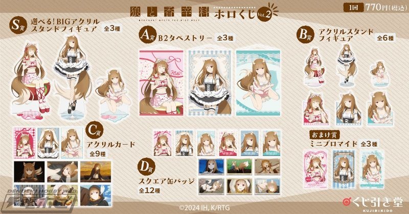 KADOKAWAが運営するオンラインくじサービス「くじ引き堂」に、TVアニメ『狼と香辛料 MERCHANT MEETS THE WISE WOLF』のオリジナルグッズが手に入る「「狼と香辛料 MERCHANT MEETS THE WISE WOLF」ホロくじ Vol.2」が登場! 2025年8月20日(水)12時より販売開始です。