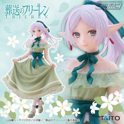 タイトーの公式サイト「タイトープライズページ」にて、「葬送のフリーレン Coreful フィギュア フリーレン~ドレスver.~」のサンプル画像が公開中。肩のフリルや胸元のリボンなど細部まで丁寧に造形された本アイテムは、衣装カラー違いのタイクレ限定版もラインナップされて、2025年10月18日に登場予定です。