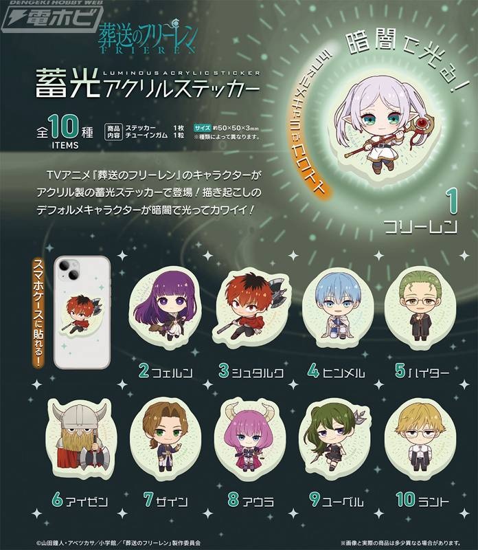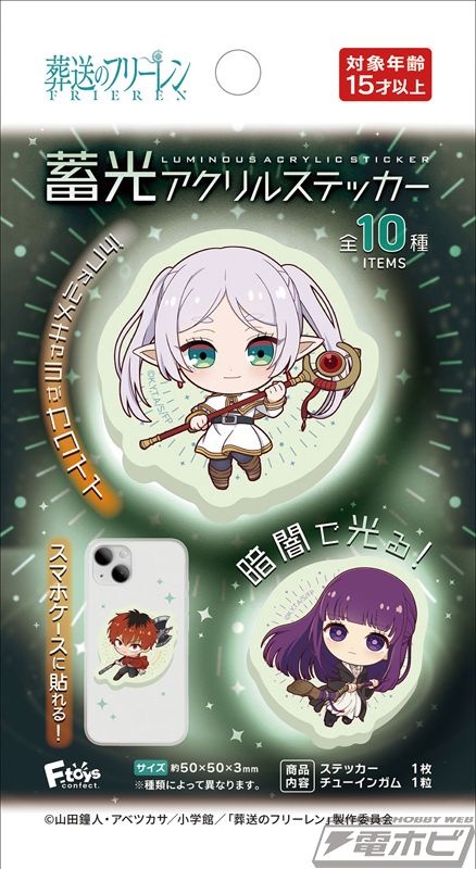 エフトイズから、食玩「葬送のフリーレン 蓄光アクリルステッカー」(全10種)が登場! 2026年3月16日(月)より沖縄を除く全国で発売予定です。