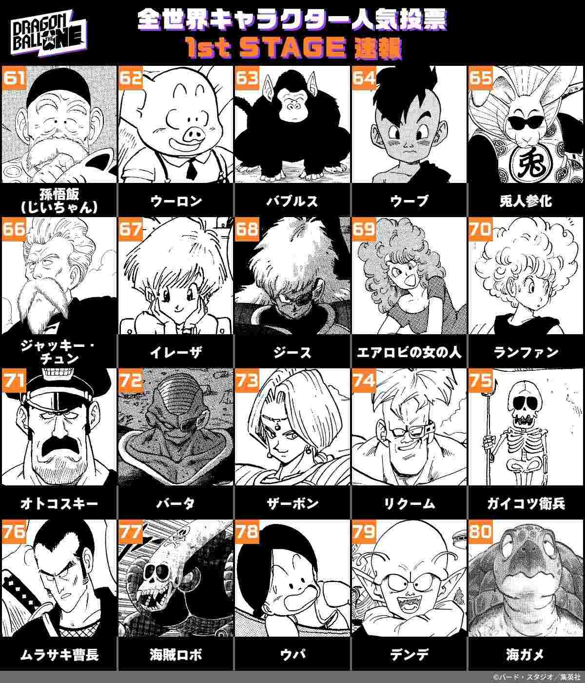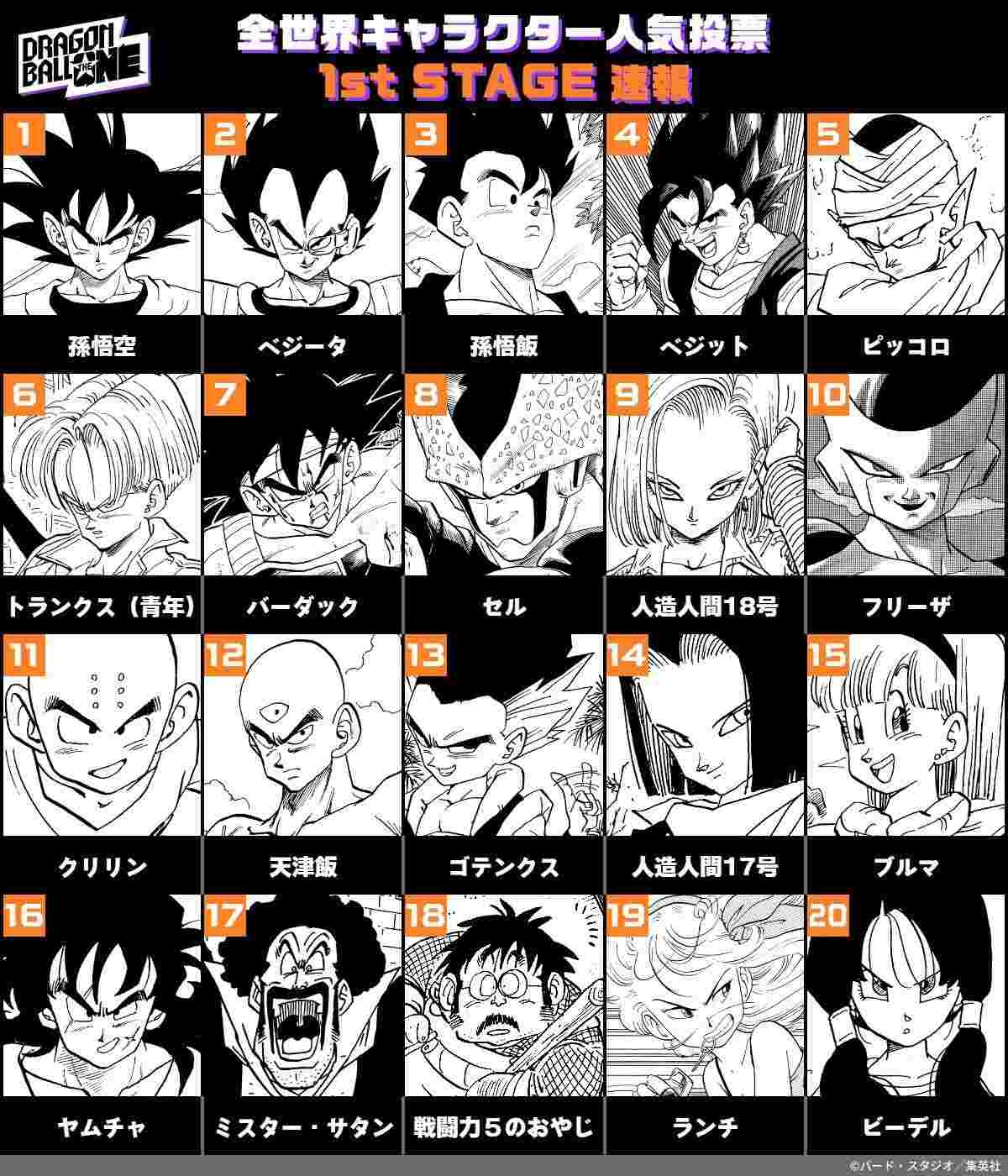 漫画『DRAGON BALL』(ドラゴンボール)初の全世界キャラクター人気投票「DRAGON BALL THE ONE」の途中結果が発表された。20日正午から投票がスタートし、1stステージの途中結果が発表され、ネット上では驚きの声があがっている。