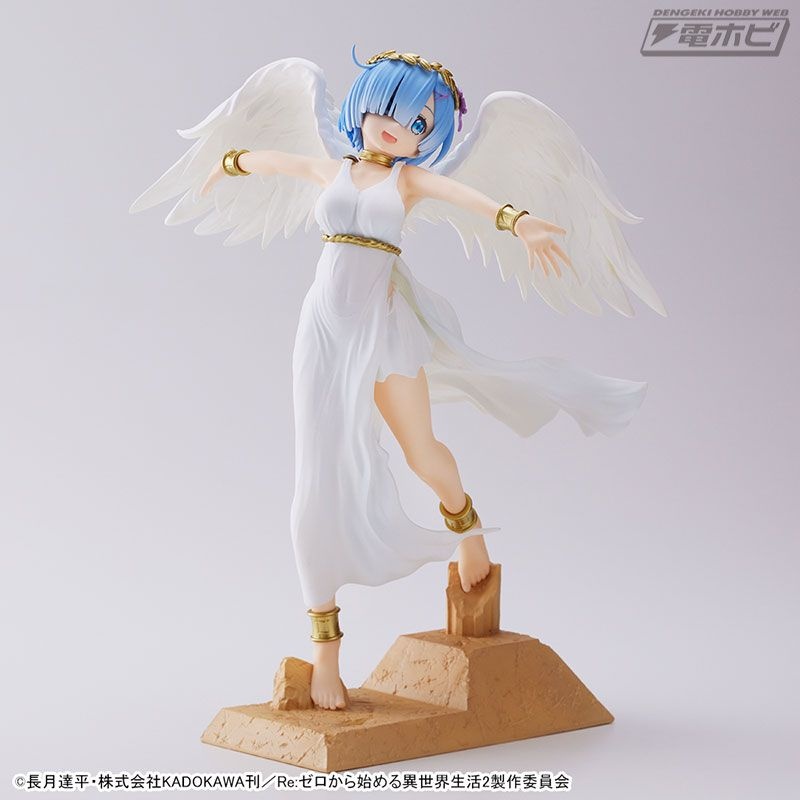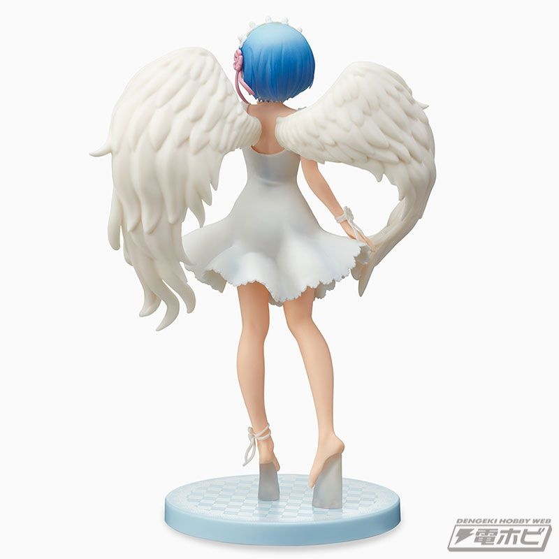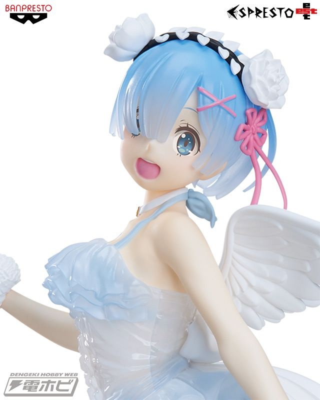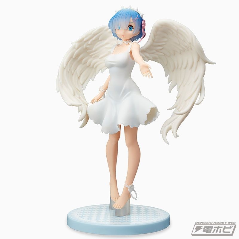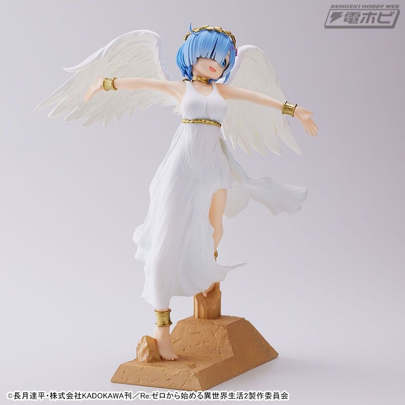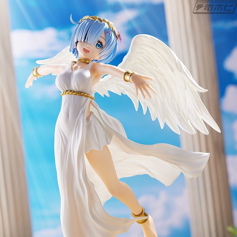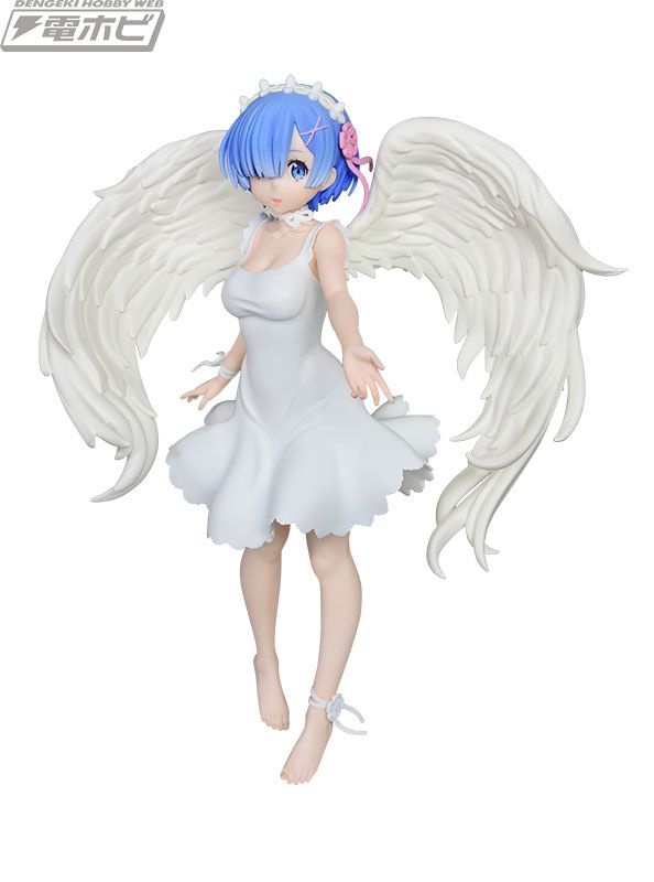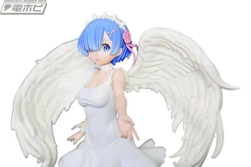 グラマラスなボディラインが浮き出た純白のワンピース、翼の広がり、そして慈愛の微笑み……その可憐さが限界突破し、もはや鬼がかった癒しの天使「レム」がここに降臨です!