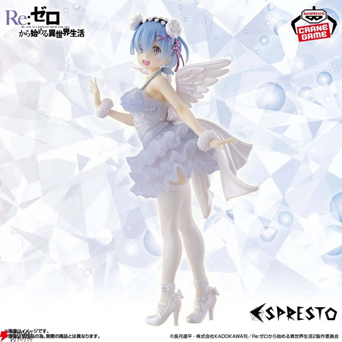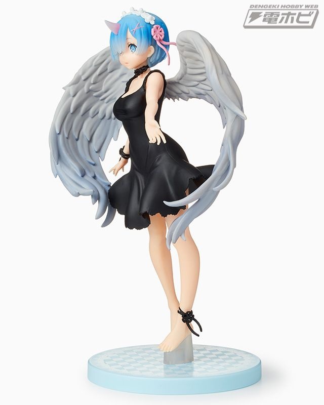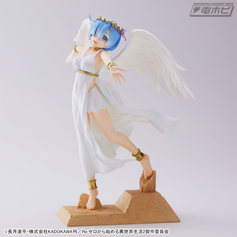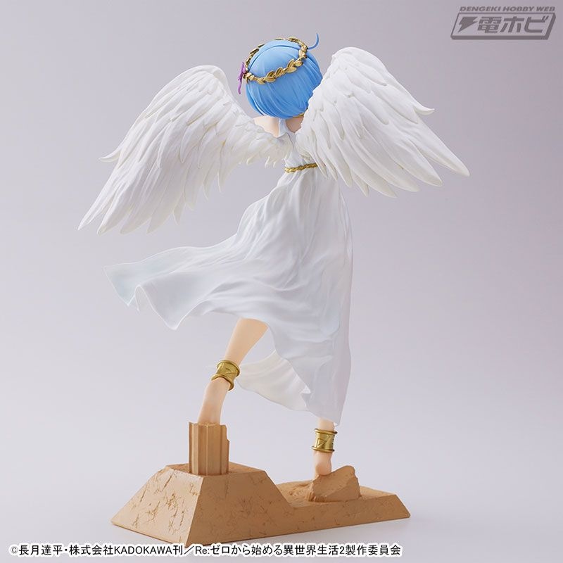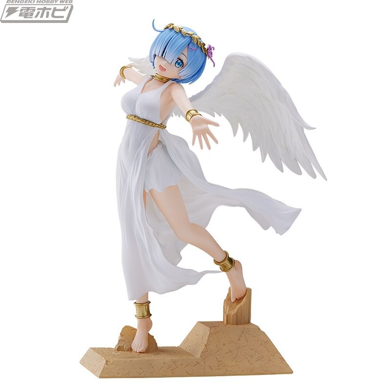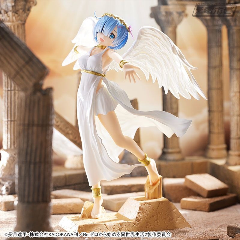 グラマラスなボディラインが浮き出た純白のワンピース、翼の広がり、そして慈愛の微笑み……その可憐さが限界突破し、もはや鬼がかった癒しの天使「レム」がここに降臨です!