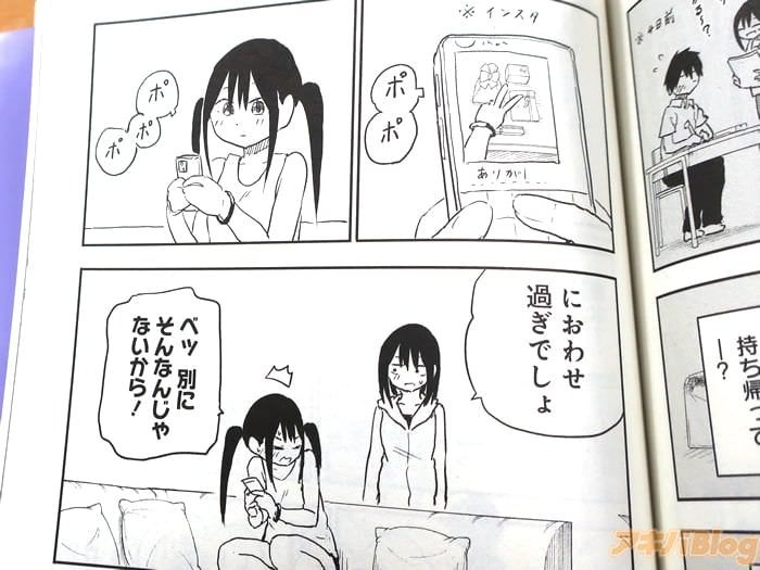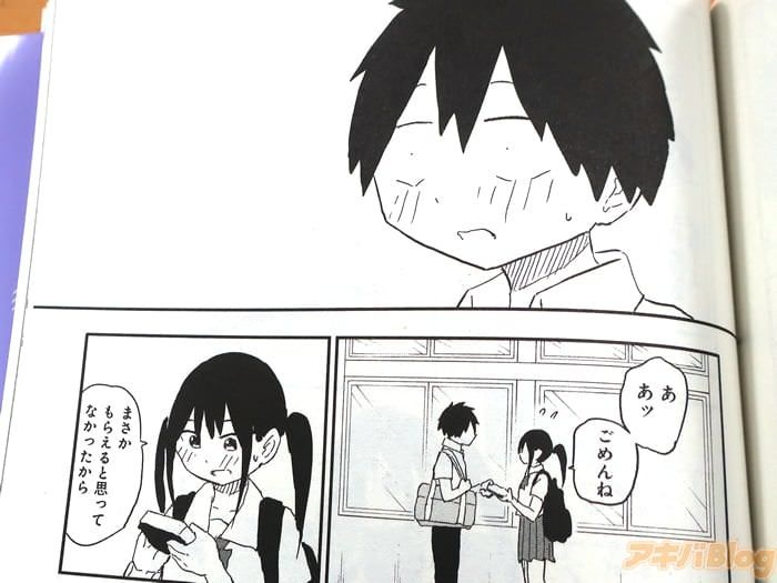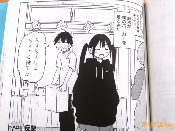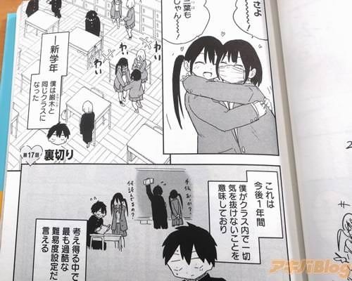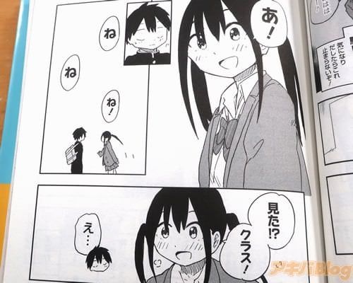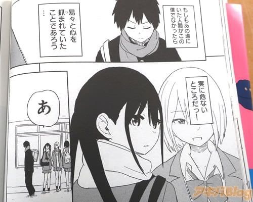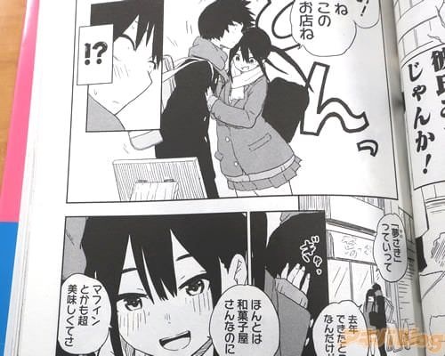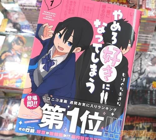 今回発売になったコミックス「やめろ好きになってしまう」1巻【AA】には第1話~第13話と第9.5話、「おまけ」2編を収録(もくじ)し、販促POPは『ニコニコ漫画で週間お気に入りランキング第1位』、折込チラシは『あざとい系女子がグイグイくるっ!』で、オビ謳い文句は『その行動(アプローチ)、故意か無邪気か!?脳内騒然ラブコメディ!』などになってた。