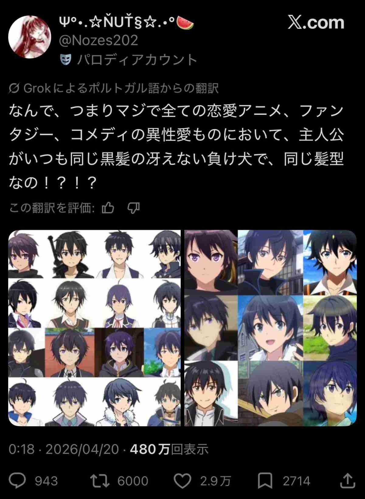なろう系の主人公だけ並べられたら判別できない自信がある