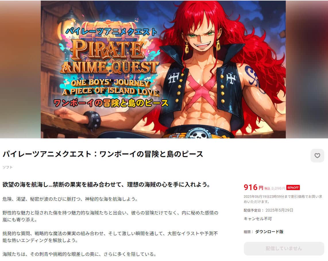 注目を集めたのは、「Red Fables」というメーカーが製作する「パイレーツアニメクエスト:ワンボーイの冒険と島のピース」「パイレーツアニメクエスト:ワンガールの冒険と島のピース」の2作品だ。