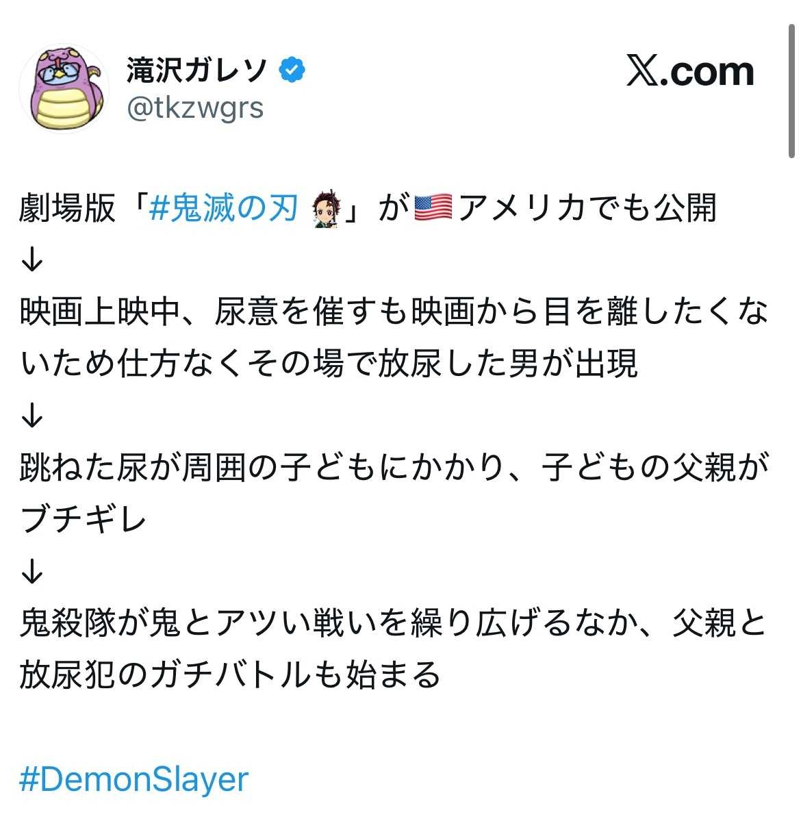 鬼滅見るような客層でもこんだけ気性荒いとかアメリカどうなってんだよ…