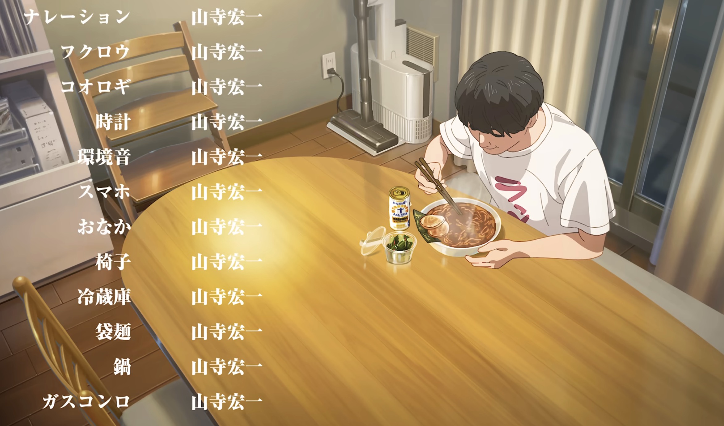 今回の擬音を演じるというオファーに山寺は「いろんな声を出したりモノマネするのは小さいころから好きだったので、興味はあり、最初は純粋に、面白いな!と思いました。けど、送られてきた資料を見て、『無理だろ!笑』と思った覚えがあります(笑)。事前にスタッフの皆さんに『なるべくリアルに』とお願いされ、どうしたもんだろうと思いながら、日々練習をしていました。冷蔵庫になったり、袋になったり、ネギになったり、その物の気持ちになってやりました」と打ち明けた。