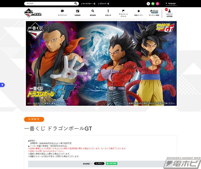 BANDAI SPIRITS ロト・イノベーション事業部の公式サイト「一番くじ倶楽部」にて、「一番くじ ドラゴンボールGT」のページが公開。