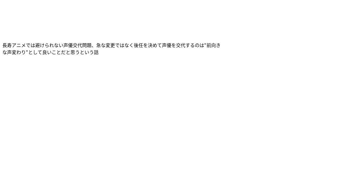 声優が変わって続いてるアニメとかサザエさんとドラえもんぐらいだろ