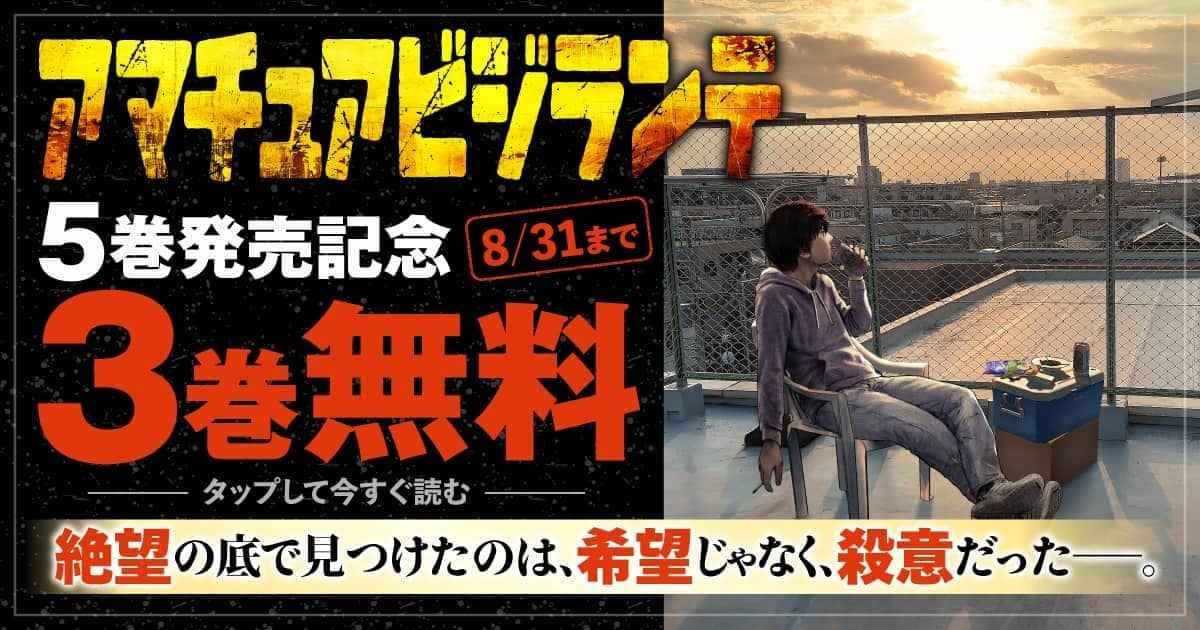 「アマチュアビジランテ」は、奪われ続けた“無敵の男”尾城慎太郎を描く物語。低学歴・低収入の俗に言う低級国民である尾城は、孤独と絶望の果てに、この世を救う英雄になるために政治家の暗殺を決意していた。そんな尾城の前に、育児放棄されまともな食事をしていない隣家の少女・ヨツバが現れる。仕方なく彼女と兄弟たちの食事の面倒を見る尾城だったが、母親の借金のカタに、ヨツバがヤクザに拉致されてしまう。政治家の暗殺用に準備していた武器を手に、ヨツバを救出に向かった尾城は、そこで自分が秘めていた「殺人の才能」に開花して……。同作はヤングマガジン(講談社)で連載中。単行本の帯には、奥浩哉、南勝久、朝基まさしからのコメントも寄せられた。