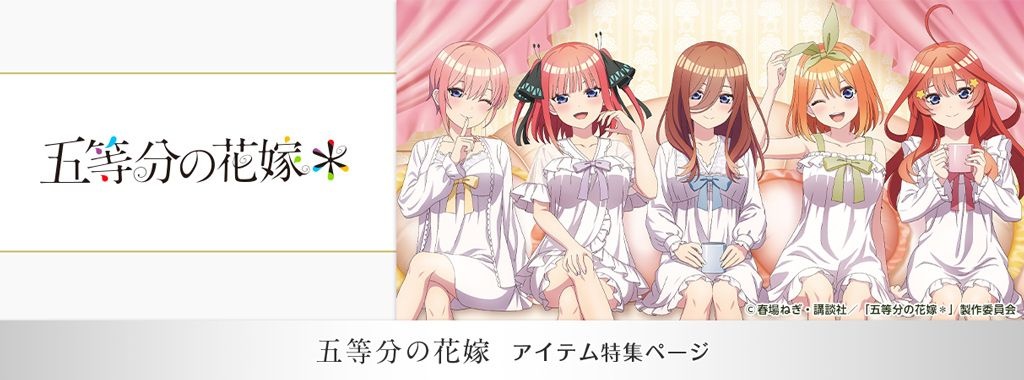 TVスペシャルアニメ「五等分の花嫁*」から、可愛いナイトウェア衣装姿の新規描き下ろしイラストを使用したグッズが登場!