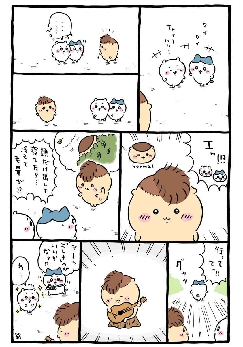 そもそもくりまんじゅうは家持ってなく切り株のところにいつもいるのでこれも葉っぱの中に身体埋めて屋外で寝ているんだろうな
