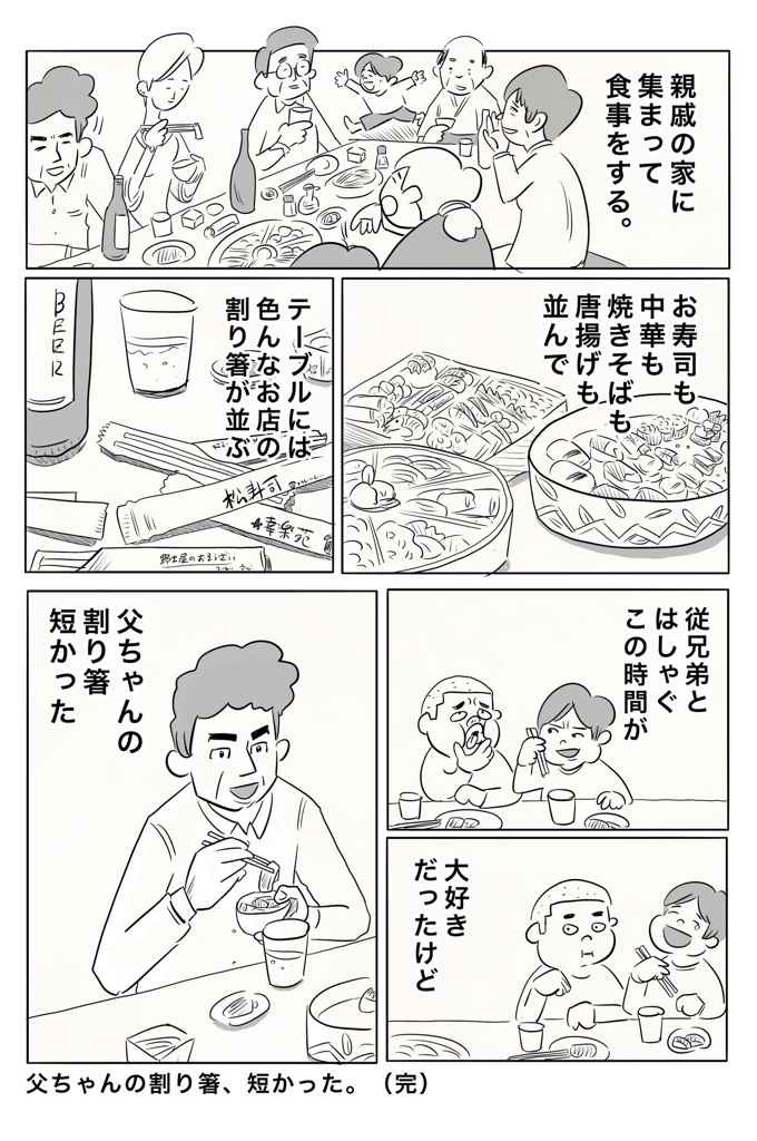 色んな箸があるから気を遣って自分が短い箸を選んだ優しい父ちゃん
