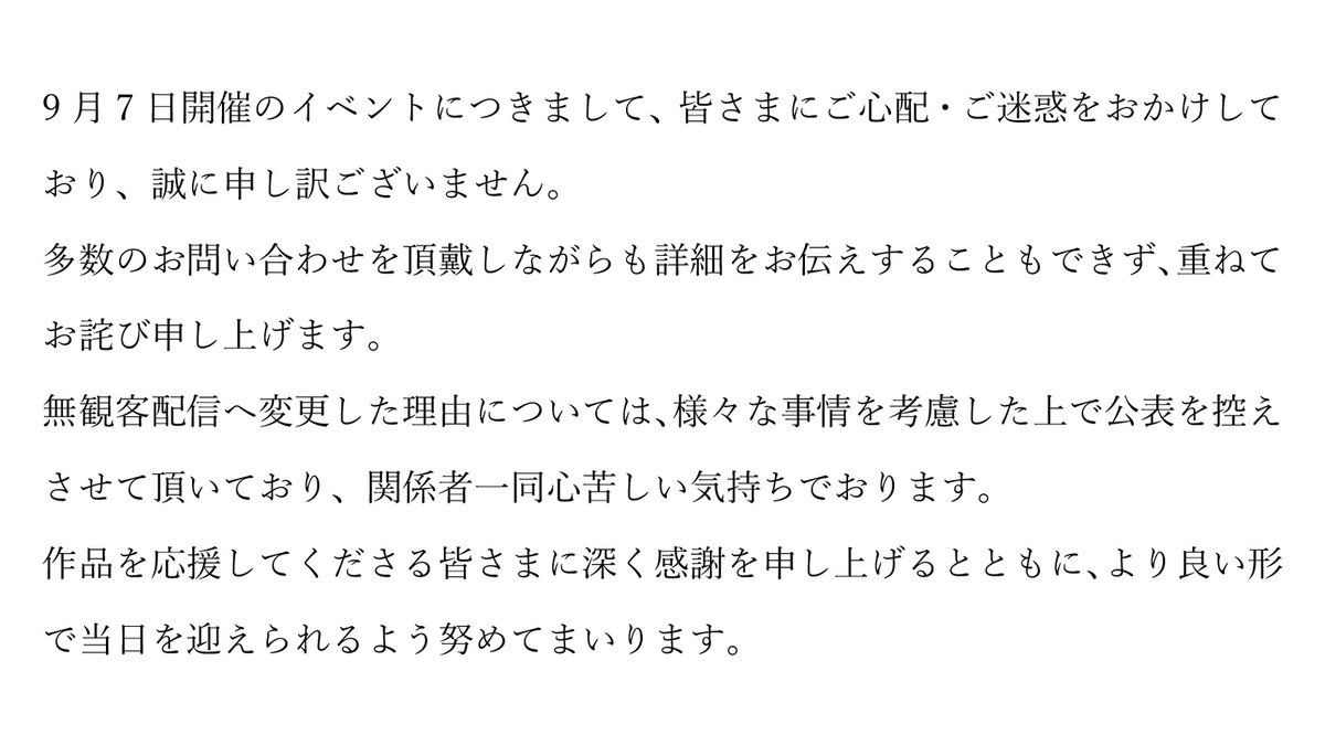 出演者が一部変わるならわかるけど配信に切り替えはやばいやろ