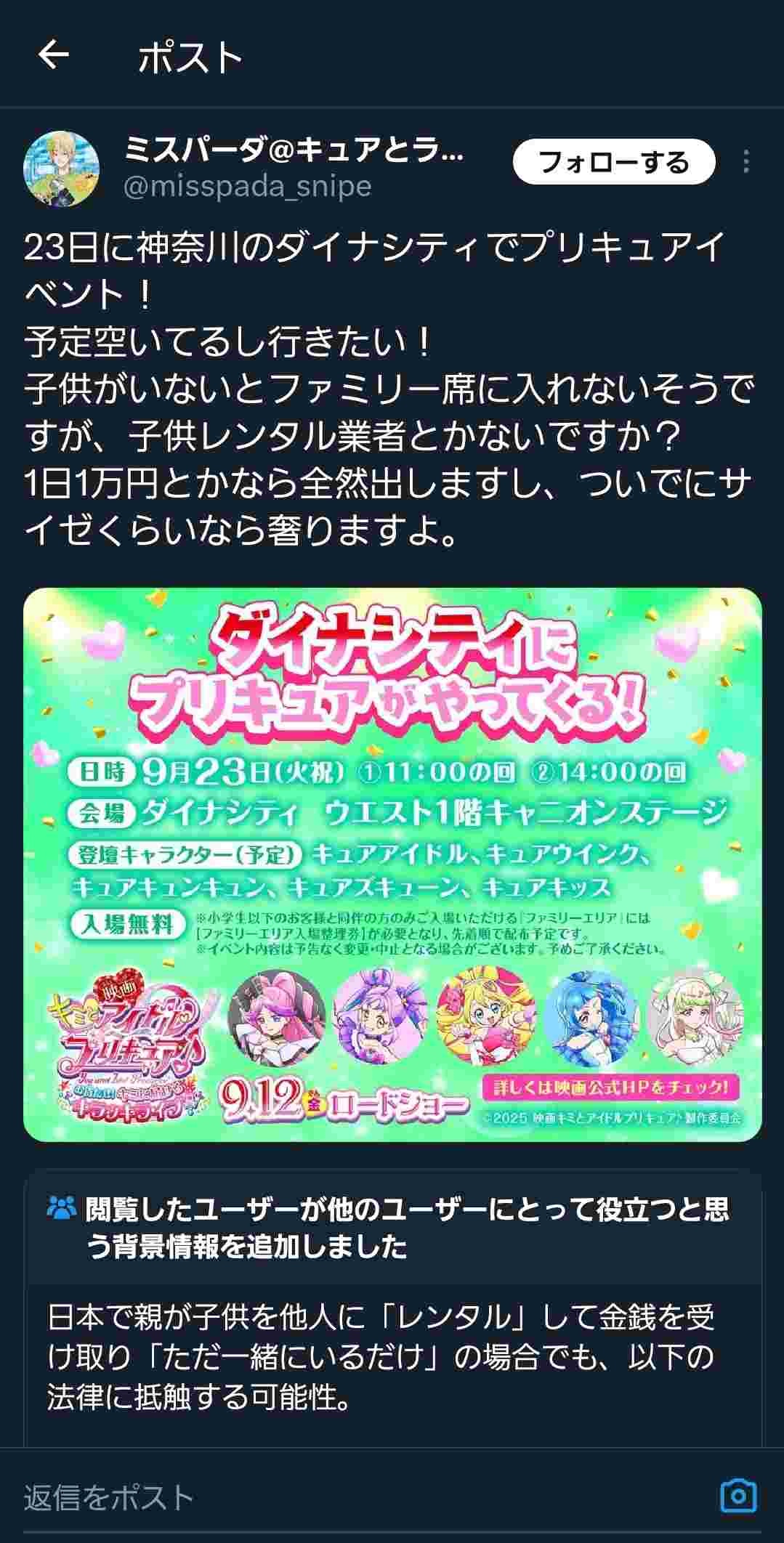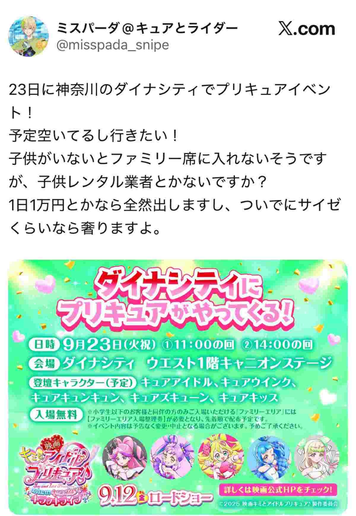 公式が子連れ限定にしてるあたり苦情来てたんやろな