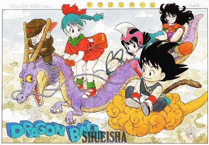 1985年2月26日発売週刊少年ジャンプの創刊850号記念に描きおろされた折込ポスター。本編では芭蕉扇を借りるために悟空とチチが亀仙人の元へ。生き生きとした表情にそれぞれのキャラクターの物語が詰まった、見れば見るほどワクワクしてくるイラストだ。