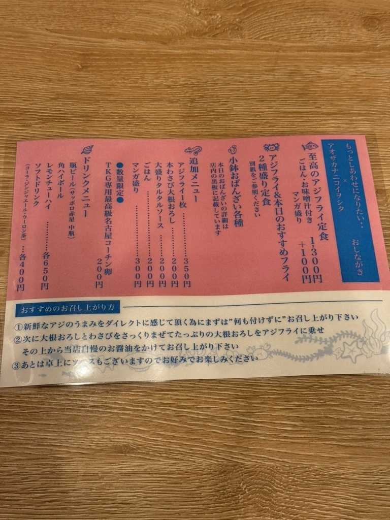 大根スリとワサビはアジフライの薬味なのかアジフライに1400円とか払わない700円
