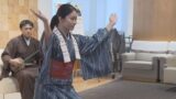 12月10日は関係者が阿部知事を表敬訪問し、演奏も披露しました。県庁の応接室に響く三線の音色。伝統衣装を身に着けた女性がしなやかに踊ります。