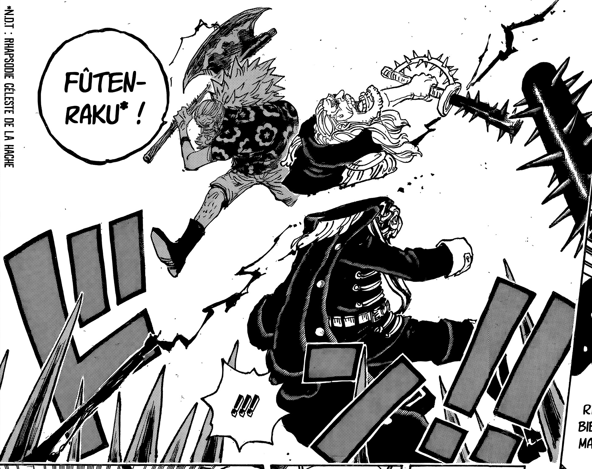 斧持ってる奴は元ロジャー海賊団、海賊王の左腕スコッパー•ギャバン切られてる奴は天竜人、神の騎士団ソマーズ聖