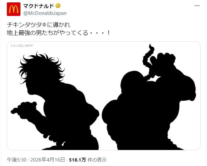 マクドナルド次回コラボは「刃牙」か? シルエット貫通してる画像公開真ん中誰?