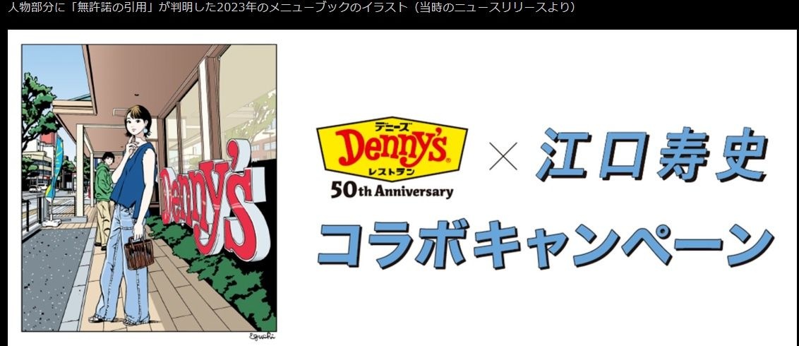 デニーズジャパンは11月7日、ファミリーレストラン「デニーズ」のメニューブックなどに使っていた江口寿史氏によるイラストのうち1点に、