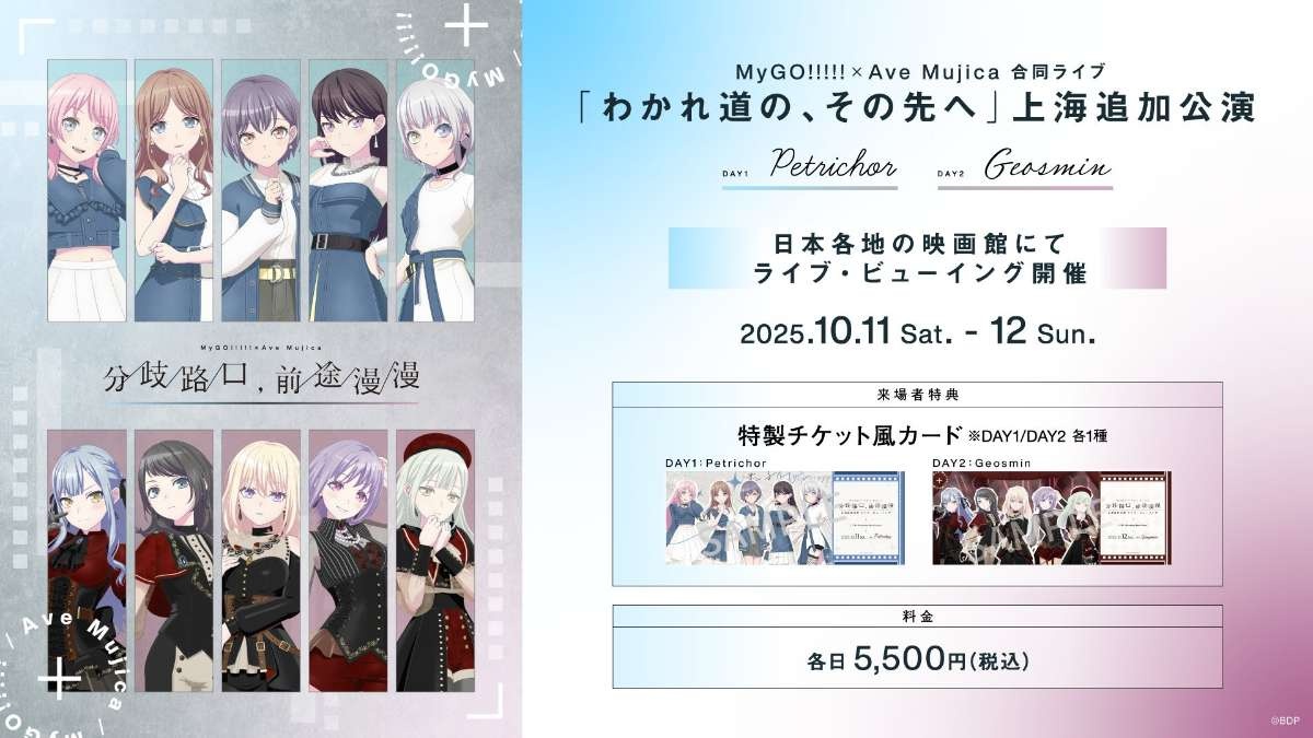 MyGO!!!!!×Ave Mujica 合同ライブ「わかれ道の、その先へ」上海追加公演、ライブ・ビューイング開催決定💡