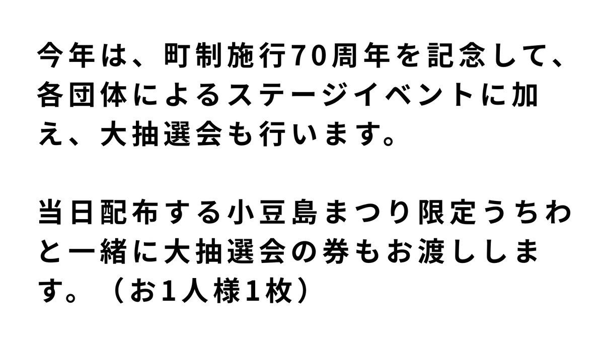 今週末に、第43回小豆島まつりを開催いたします。