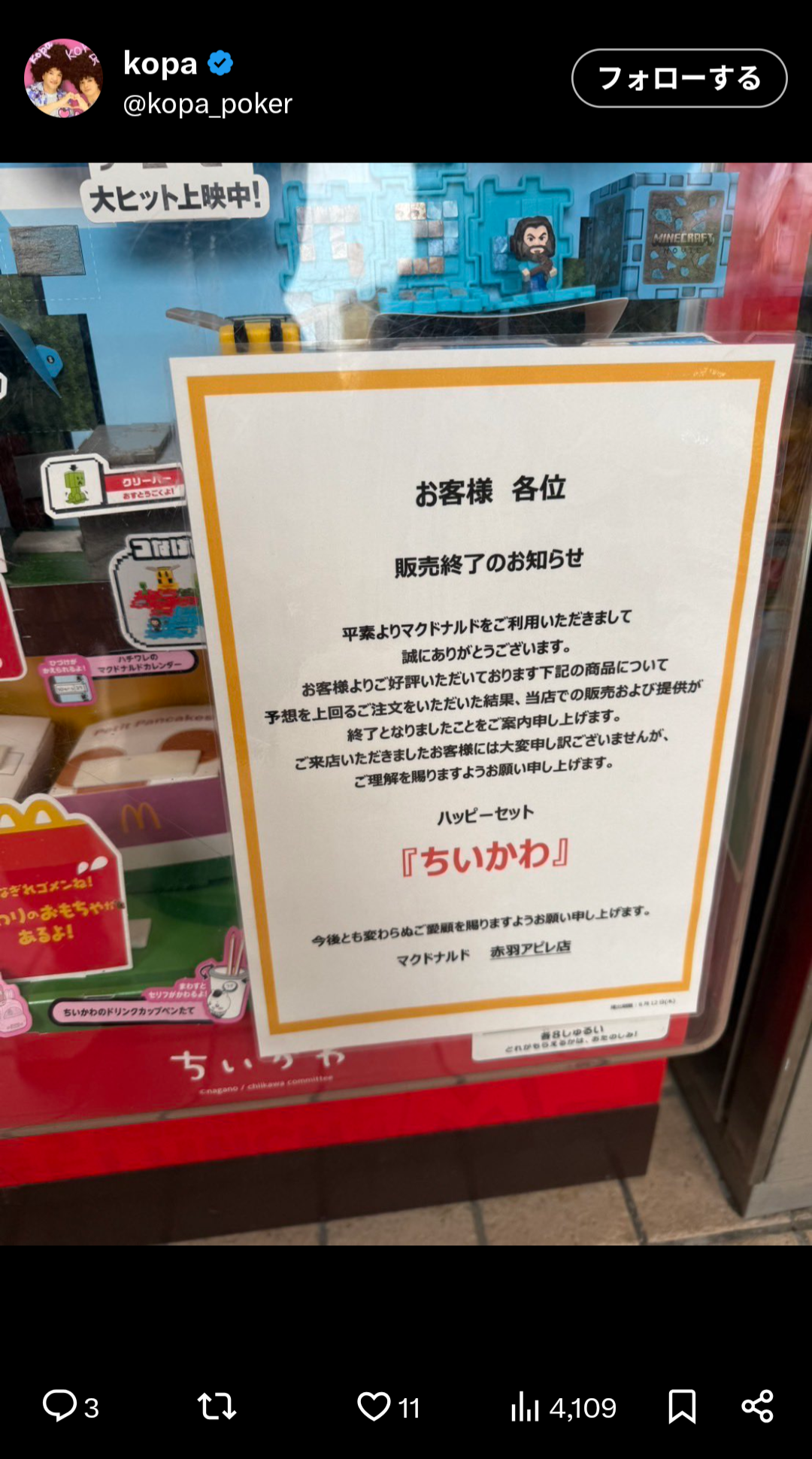 夕方にハッピーセット4つ普通に買えたが