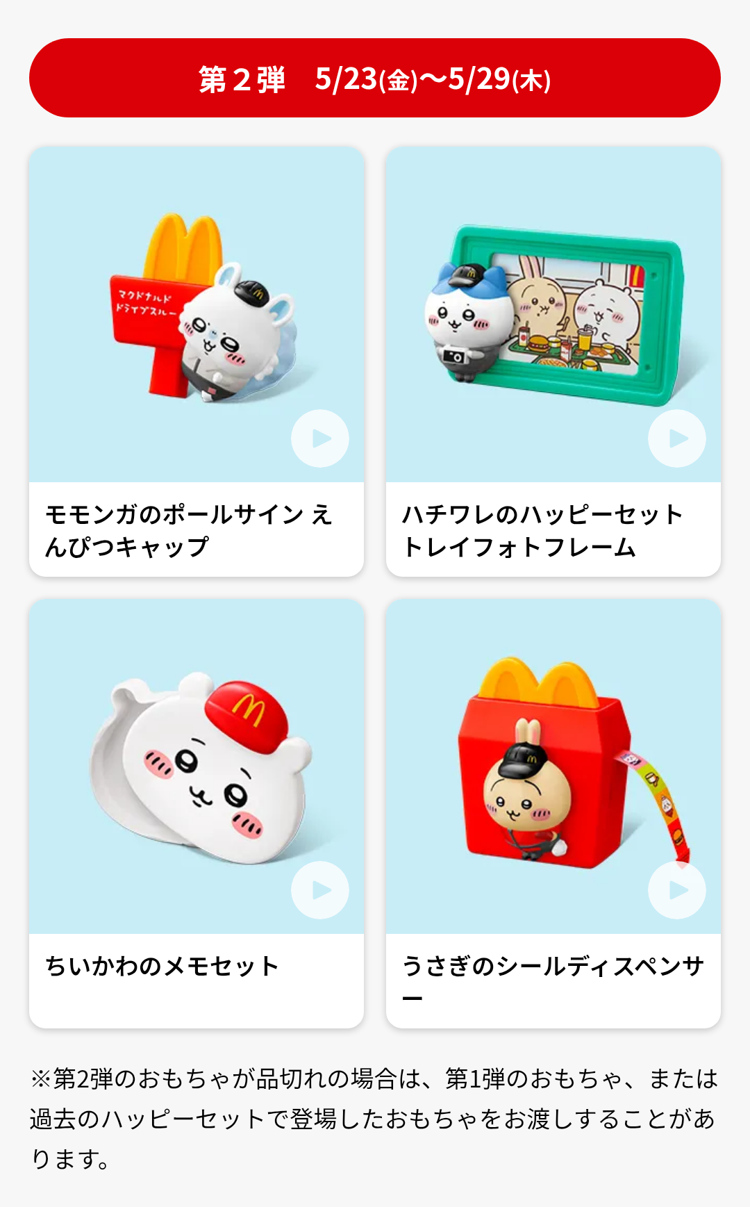 ちいかわハッピーセット第二弾、初日で売り切れ。むせび泣く子供たち