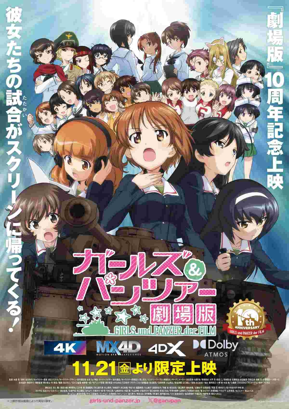 2025年11月21日(金)より、全国175館の映画館にて『ガールズ&パンツァー 劇場版』10周年記念上映~バリエーションちょい増し作戦です!~ の上映が決定いたしました。今回の上映では過去に実施している通常上映、Dolby Atmos上映、4DX上映の他、映像をより高精彩にアップコンバートした4K上映とMX4D上映が新たに加わります