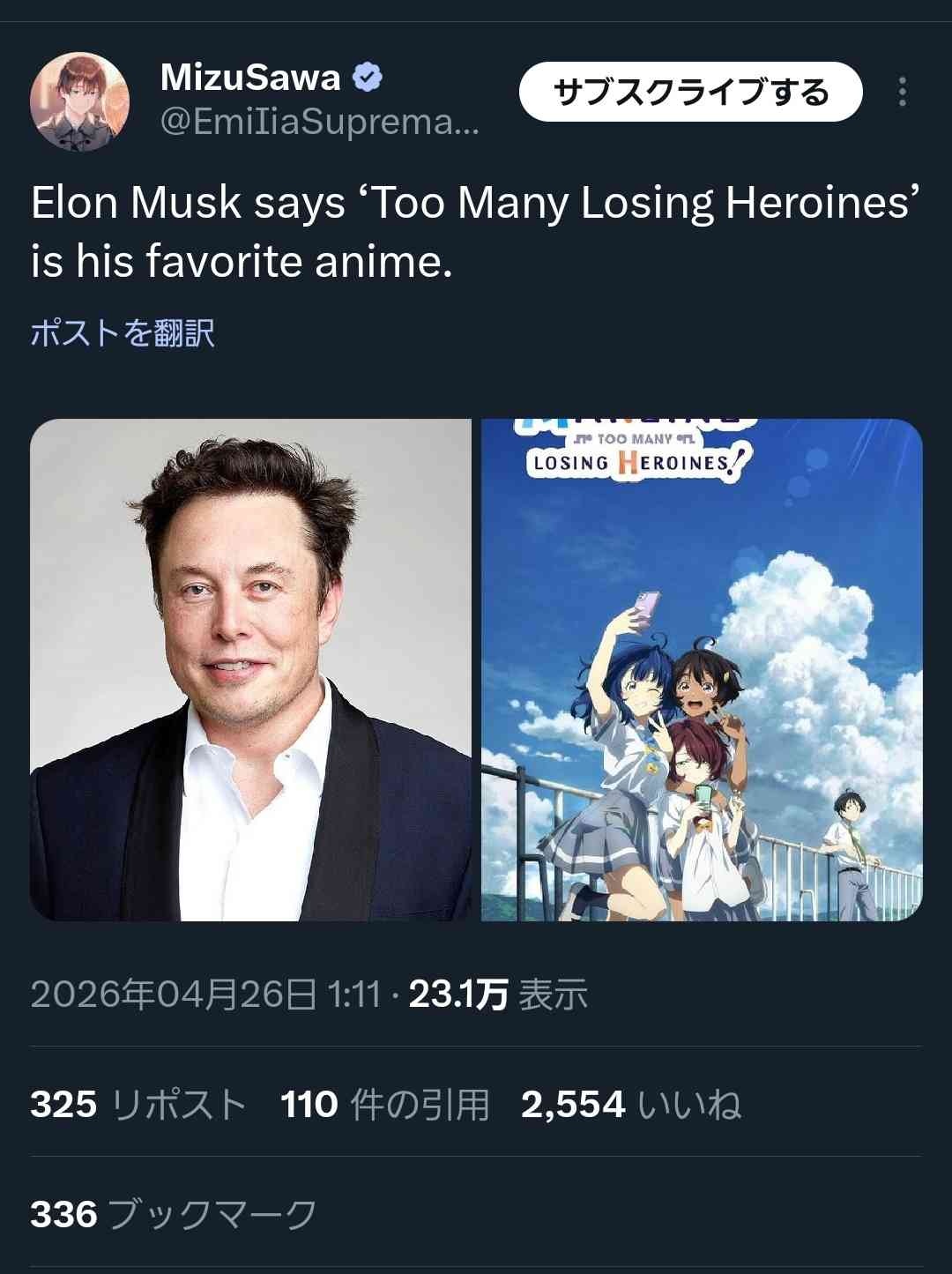 イーロンはアニメ見ている暇無さそうなイメージだが