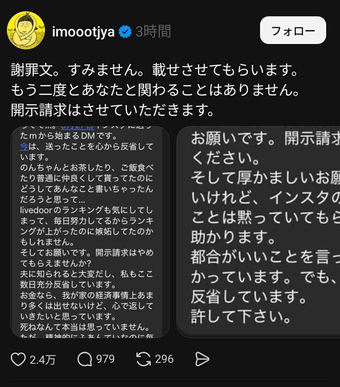 誹謗中傷DMの送り主は一緒にお茶したりご飯食べに行く仲の同業者でした!!