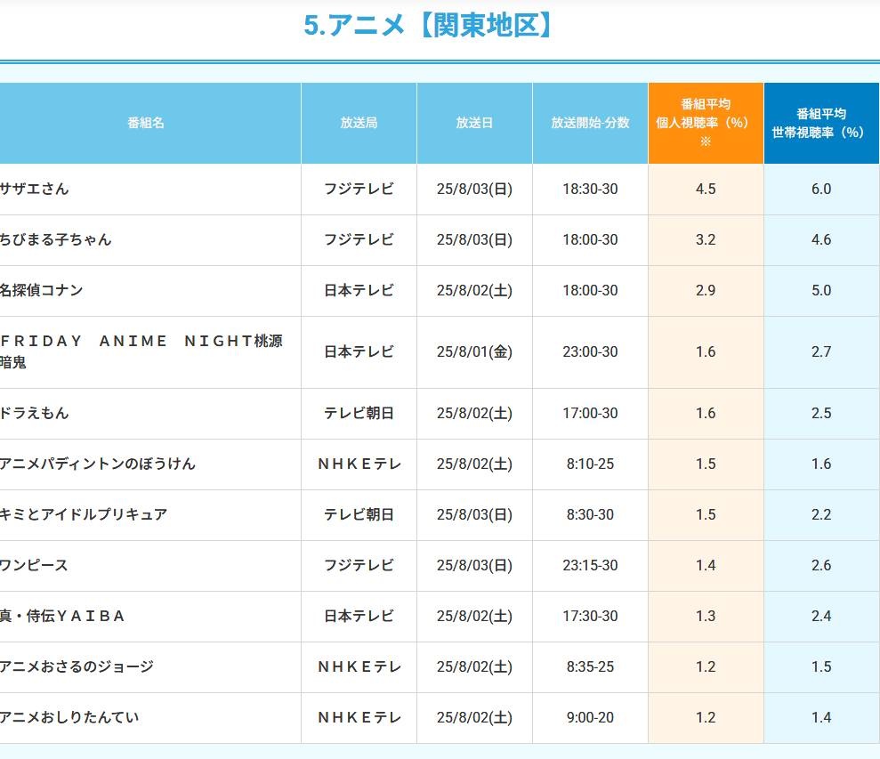サザエさん一強かよ