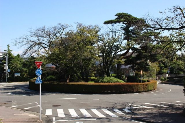 街の地名でもある「さくら通り」をぬけて川を渡ると、カーブが続く上り坂「いろは坂」が見えてくる。「いろは坂」を上っていくとそこには劇中に登場するあの階段が。いろは坂の階段から見下ろす風景はとても気持ちのいい絶景。なお、さらに進んでいくと「金比羅宮」、「天守台跡」の横をとおるカーブがある。