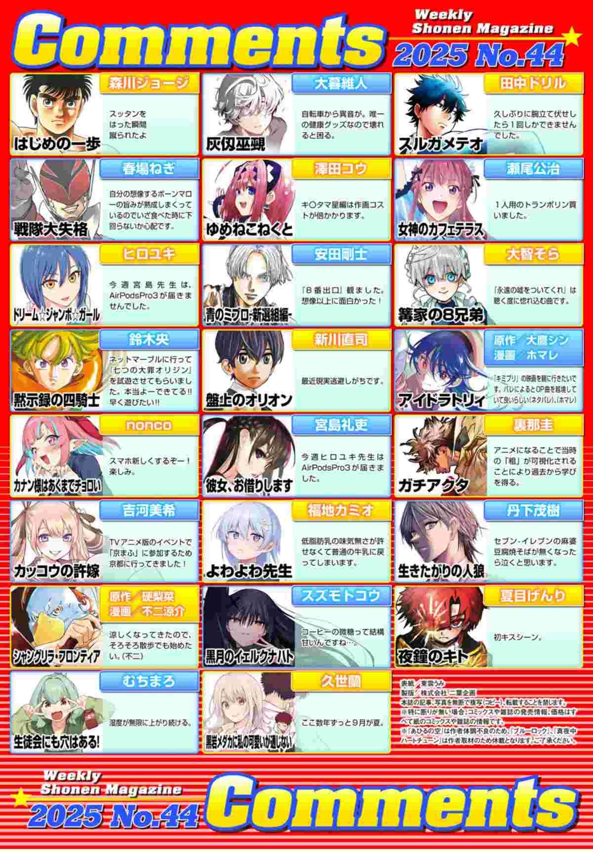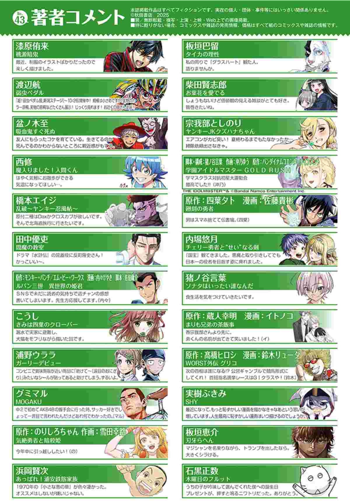 加えて島本和彦と藤田和日郎のベテランも載っていてかなり全盛期の勢いに近いのでは?※参考