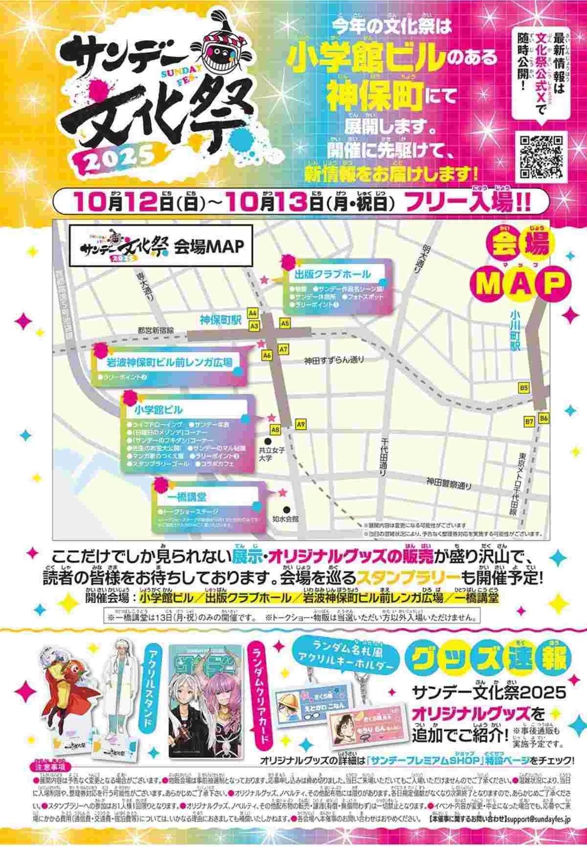 昨年大盛況だった「サンデー文化祭」が、2025年10月12日(日)~13日(月・祝)に東京神保町で開催されます。