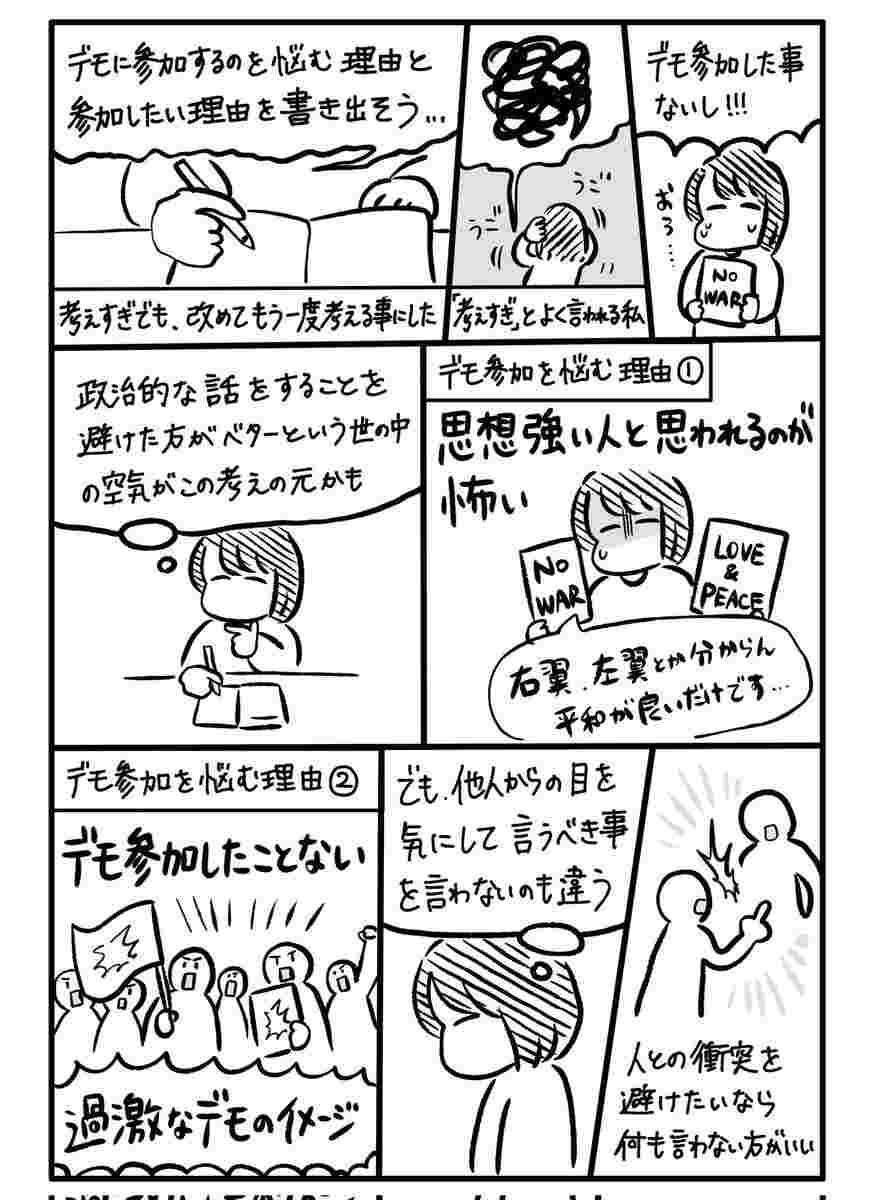 反戦を訴える⽅々の解像度が⾼くなりました。ありがとうございます。デモ参加に⾄るまでの理由もよく描かれており読みやすかったです。要は社会情勢に対する不安の吐⼝なんですよね、反戦デモっていうのは。