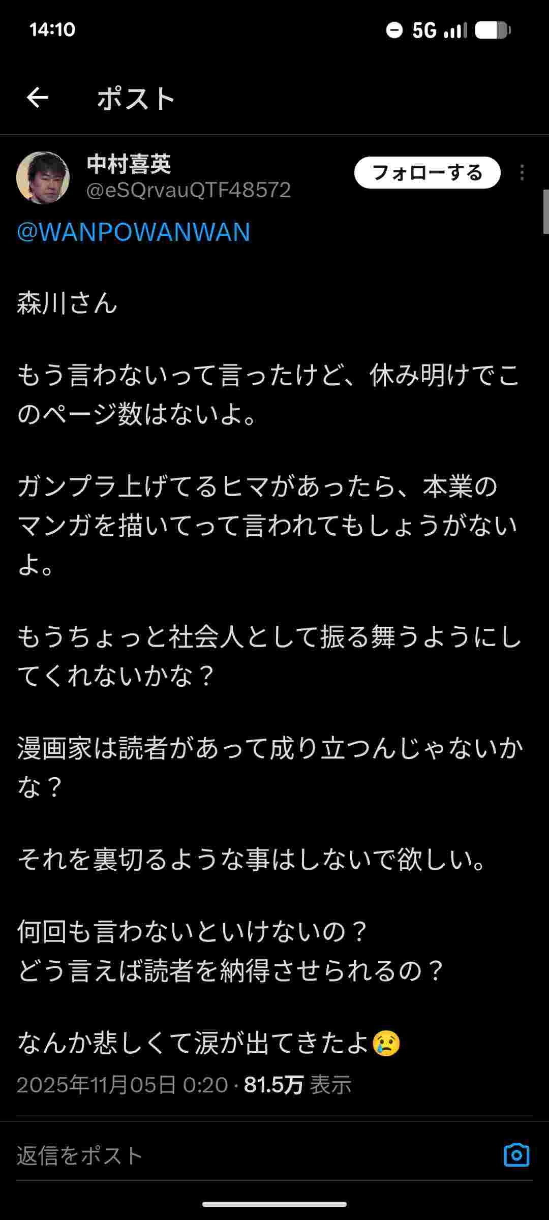 単行本の表紙は作者が勝手に描いてる発言とかもそうやがこの人SNS向いてへんのちゃうか